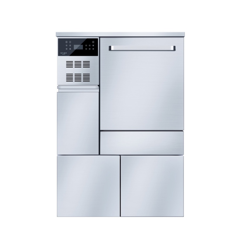 The B200 Stainless Steel Base Cabinet adopts an integrated design, which not only optimizes human-washer interaction but also expands storage functionality. Its internal space can be used to accommodate and store cleaning agents or additional basket racks, keeping the work area tidy and efficient. At the same time, the base cabinet the touchscreen to an ideal height for better visibility and operation, while providing more ample and ergonomic space for placing utensils.
